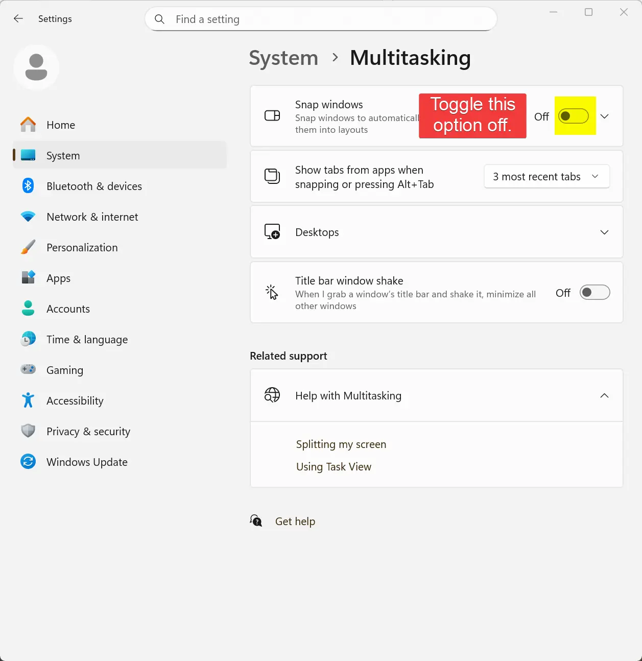 4. Make sure the highlighted options are disabled.